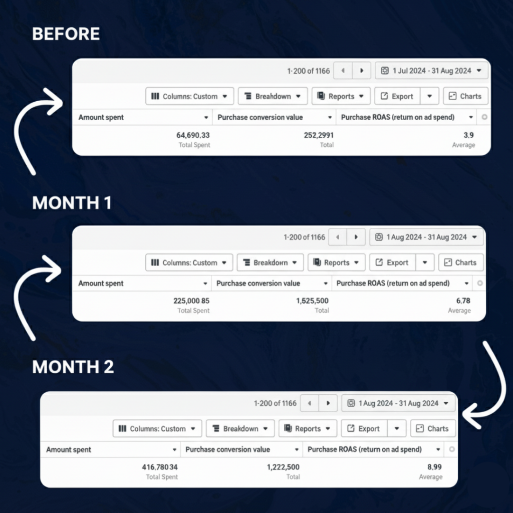 Despite consistent investment, his campaigns were achieving a decent, but ultimately limiting, Return on Ad Spend (ROAS). Scaling aggressively was too risky, and his current ad strategy was holding the business back from its true profit potential.
